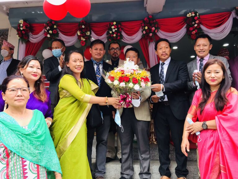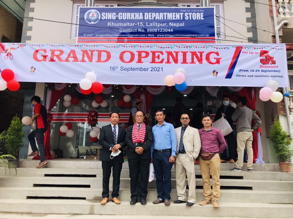 ‘Bouquet‘ presented to SGI Ltd by Chairperson Women Sub Committee Singapore Gurkha Pensioner Association Nepal in Occasion of Sing Gurkha Department store Grand opening ceremony on 21/09/2021